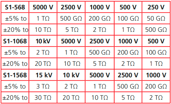 ■ S1-1568測量*高達35 TΩ(15 kV)的絕緣電阻
