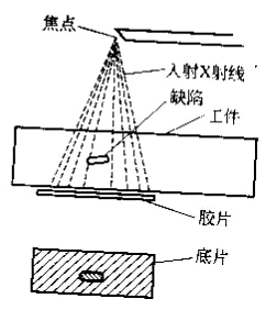 射線照相法是根據被檢工件與其內部缺陷介質對射線能量衰減程度的不同,使得射線透過工件后的強度不同,使缺陷能在射線底片上顯示出來的方法。如圖2所示,從X射線機發(fā)射出來的X射線透過工件時,由于缺陷內部介質對射線的吸收能力和周圍完好部位不一樣,因而透過缺陷部位的射線強度不同于周圍完好部位。把膠片放在工件適當位置,在感光膠片上,有缺陷部位和無缺陷部位將接受不同的射線曝光。再經過暗室處理后,得到底片。然后把底片放在觀片燈上*可以明顯觀察到缺陷處和無缺陷處具有不同的黑度。評片人員據此*可以判斷缺陷的情況。